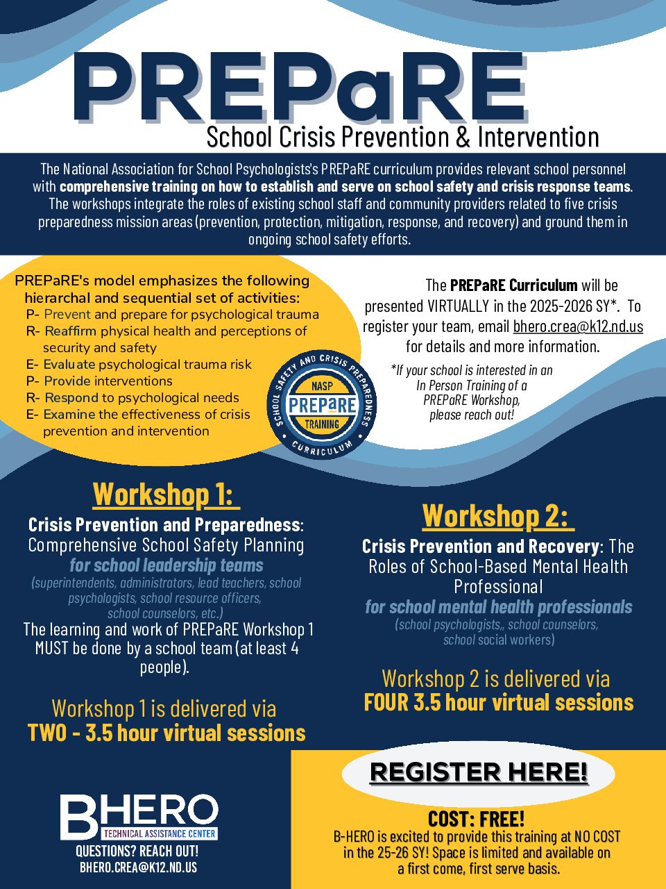 The National Association for School Psychologists's PREPaRE curriculum provides relevant school personnel with comprehensive training on how to establish and serve on school safety and crisis response teams. The workshops...